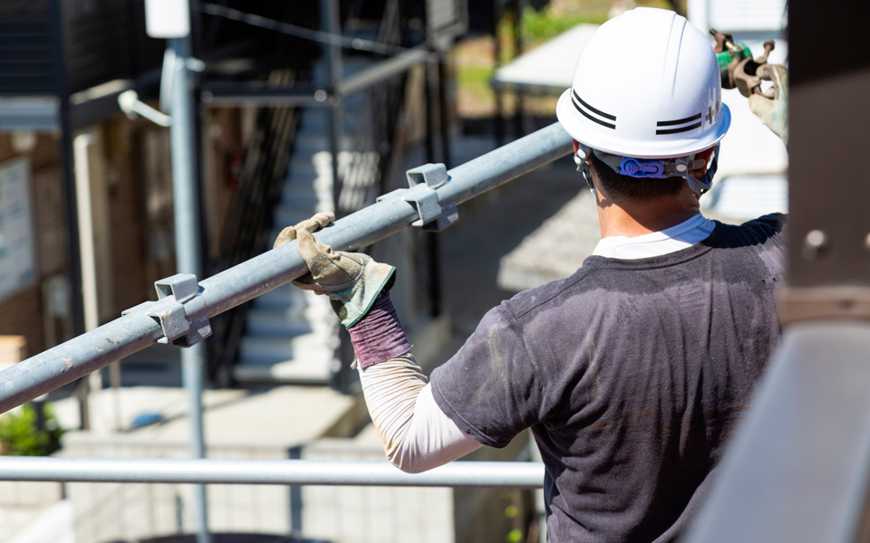 弊社では、建築の一番最初の足場の組み立てから最後の解体工事までを手掛けております。同じ、建築業界でも縁の下の力持ちとして、職人の皆様を支えることが私たちの使命でもあると感じています。職人の皆様の安全を第一に考え、安心・安全の足場の組立てを行っております。